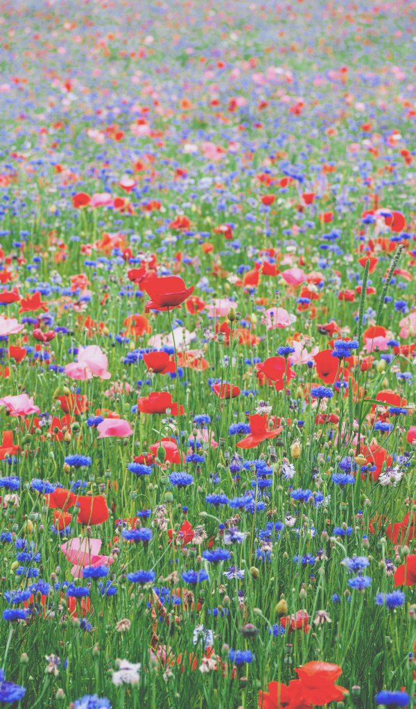 Обои: цветы, лето, поле, красные цветы - 600x1024