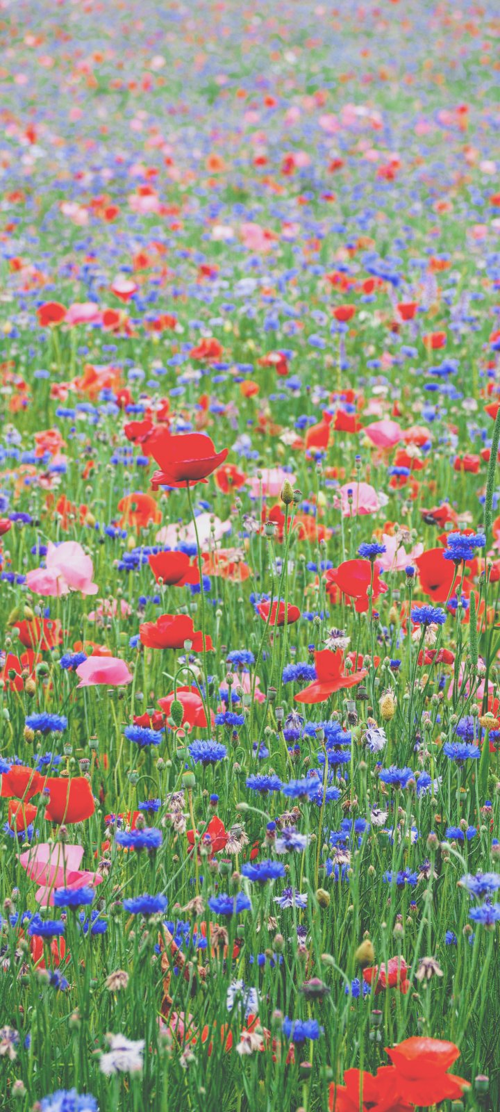 Обои: цветы, лето, поле, красные цветы - 720x1600