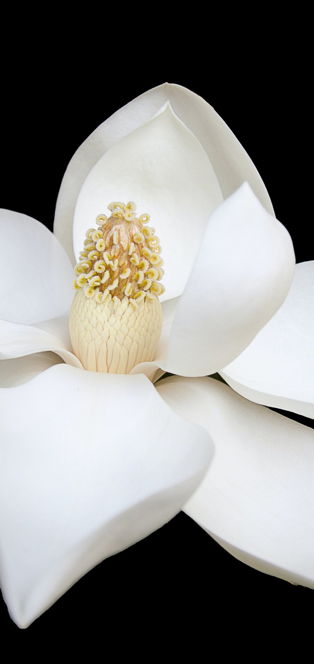Обои: белый цветок, белый, на черном фоне, лепестки, макро - 1080x2280