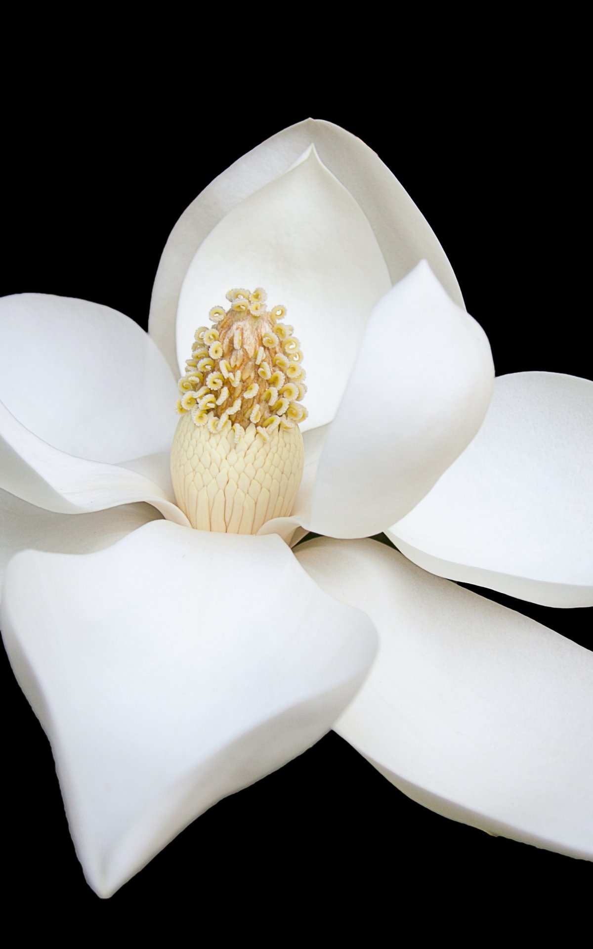 Обои: белый цветок, белый, на черном фоне, лепестки, макро - 1200x1920