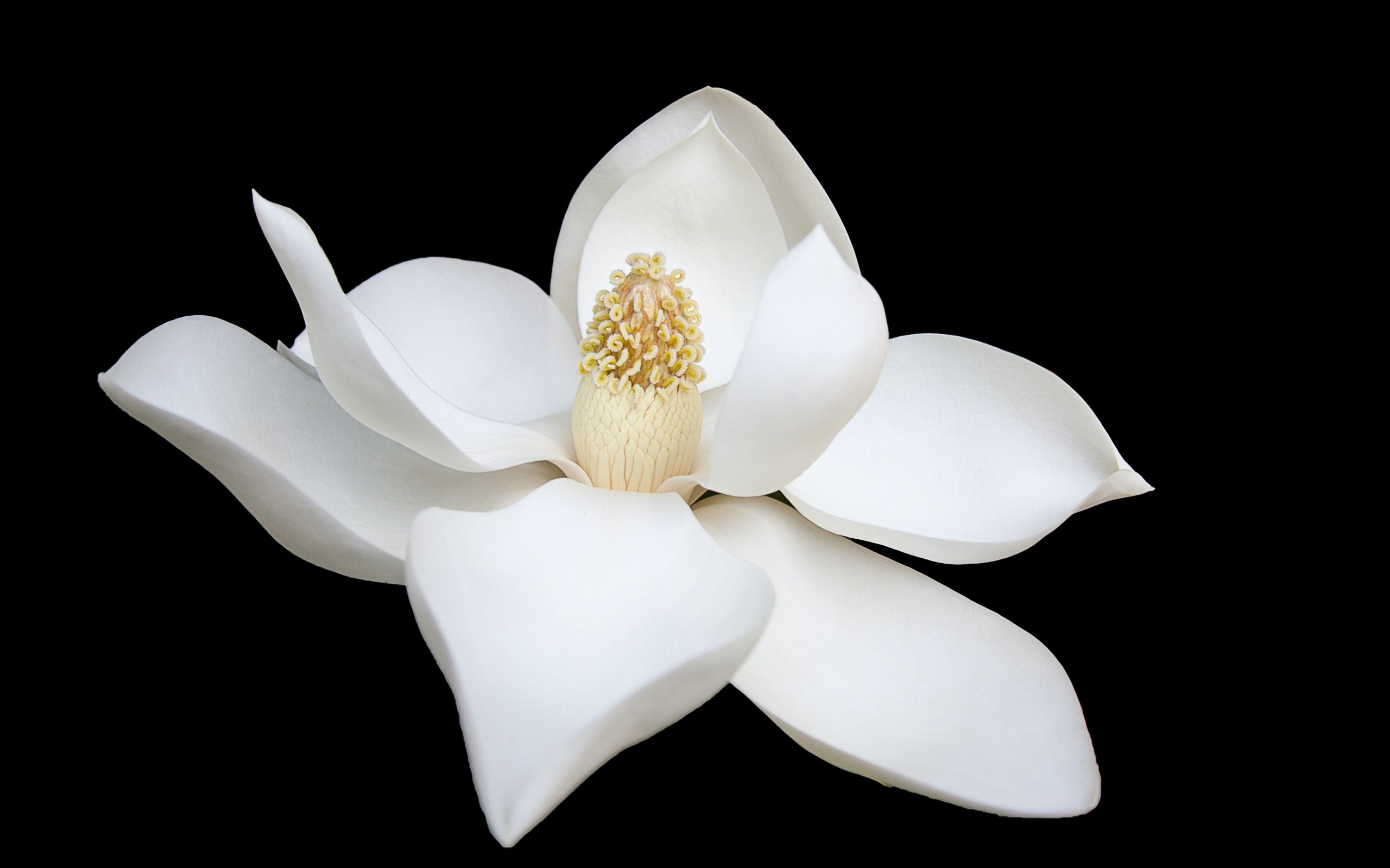 Обои: белый цветок, белый, на черном фоне, лепестки, макро - 2560x1600