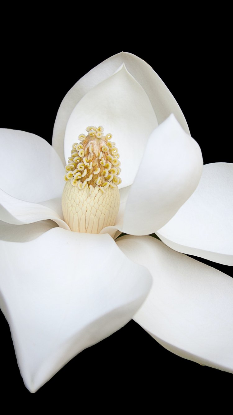 Обои: белый цветок, белый, на черном фоне, лепестки, макро - 750x1334