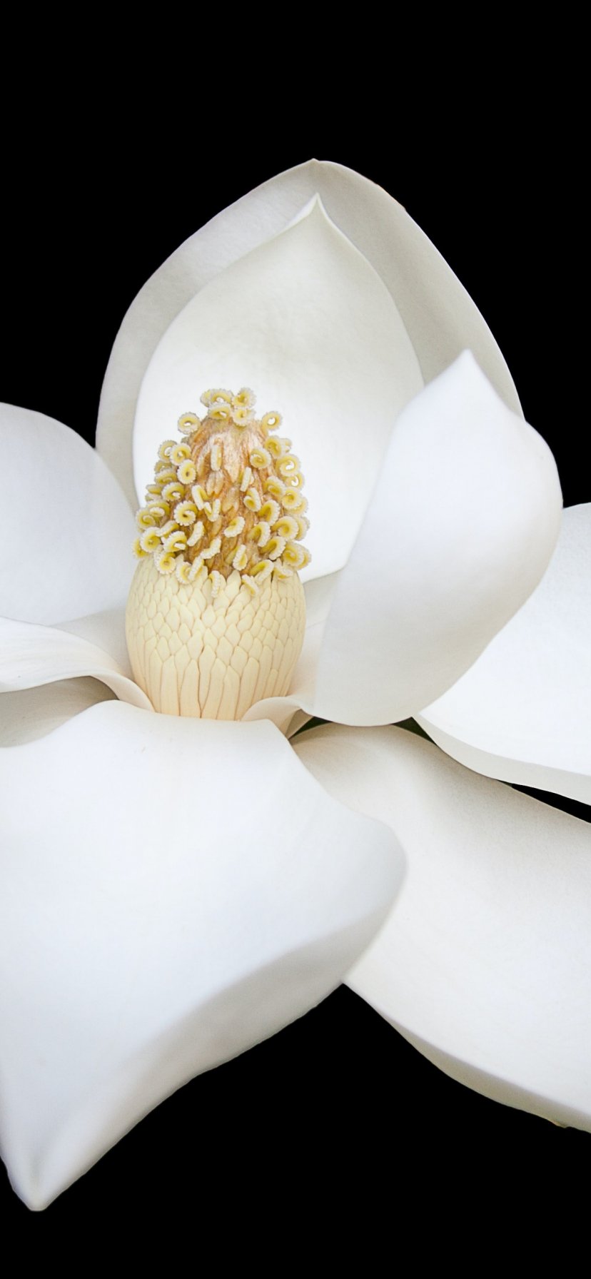 Обои: белый цветок, белый, на черном фоне, лепестки, макро - 828x1792