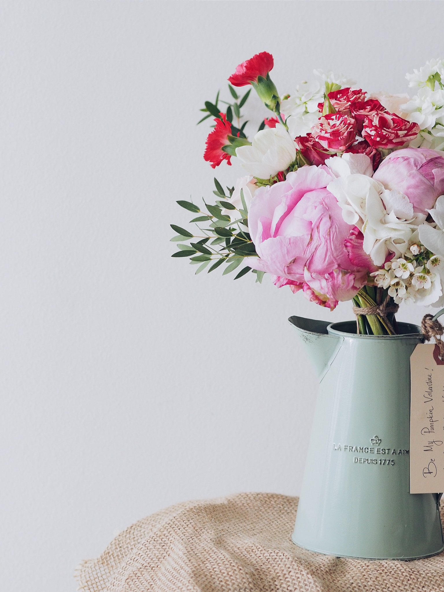 Обои: букет, эстетика, ваза, пионы, розы - 1536x2048