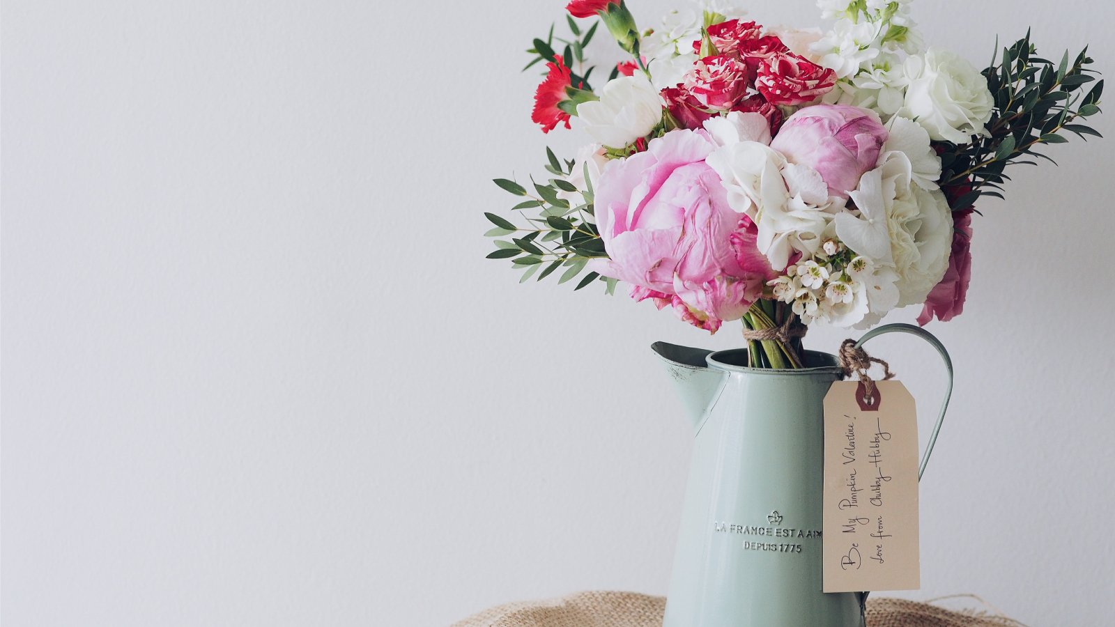 Обои: букет, эстетика, ваза, пионы, розы - 1600x900