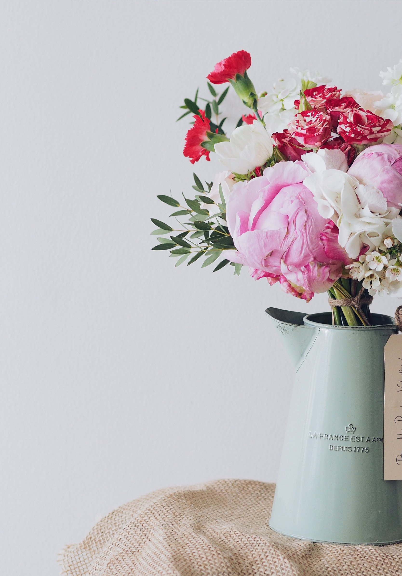 Обои: букет, эстетика, ваза, пионы, розы - 1668x2388