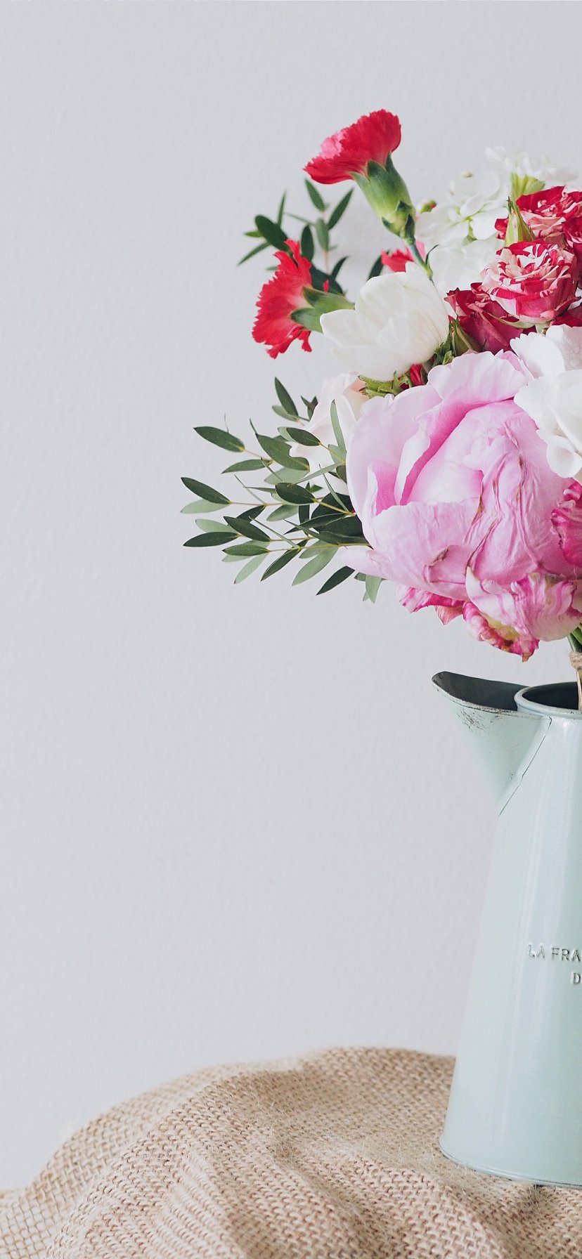 Обои: букет, эстетика, ваза, пионы, розы - 828x1792