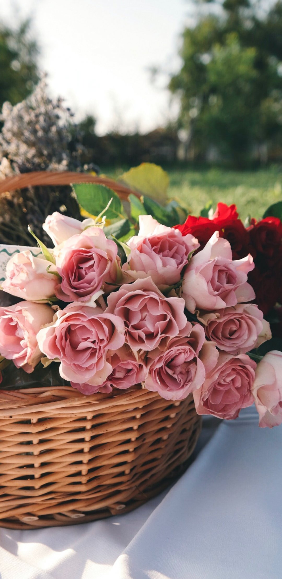Обои: цветы, корзина, розы, пикник - 1080x2220