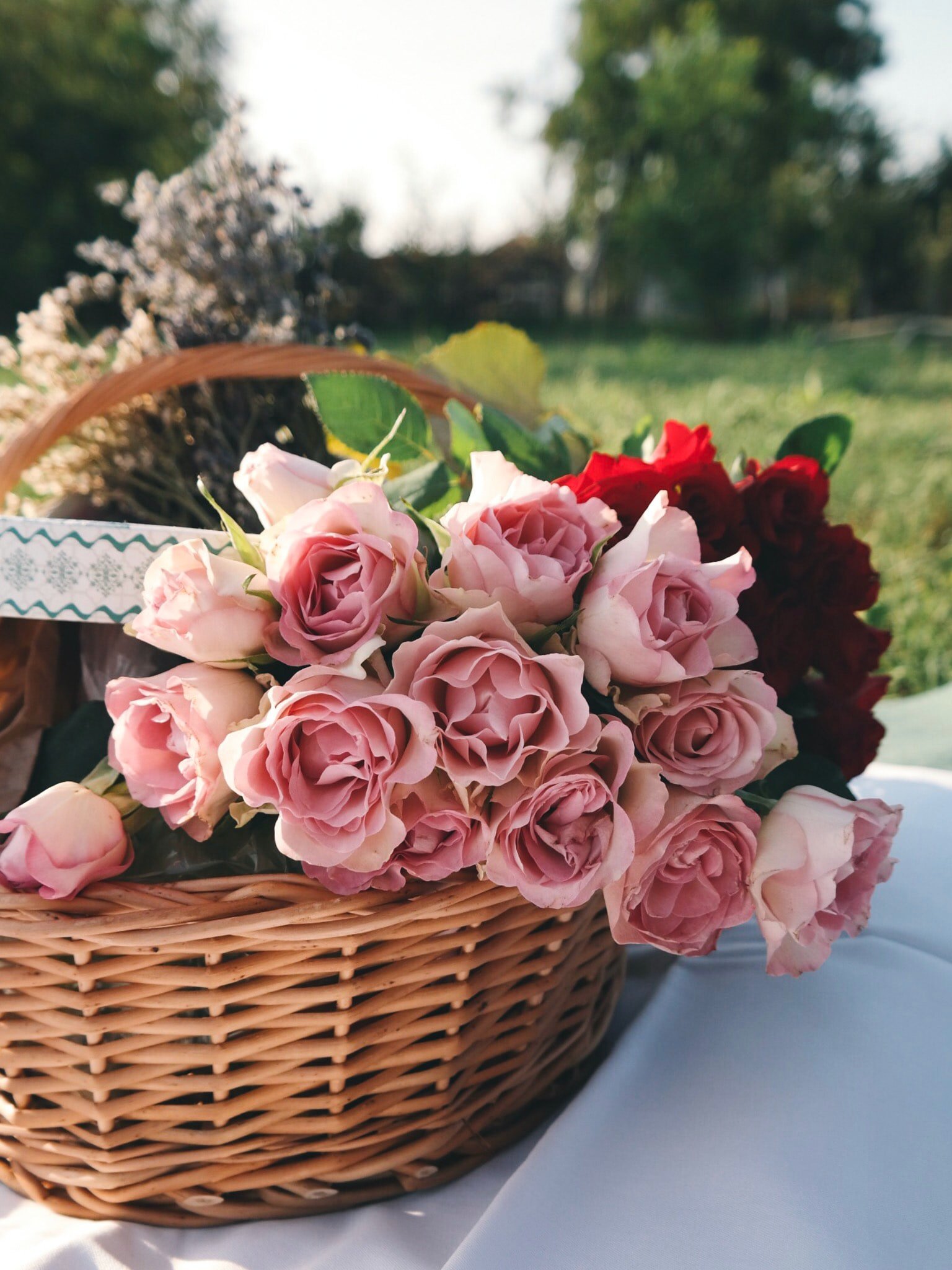 Обои: цветы, корзина, розы, пикник - 1536x2048