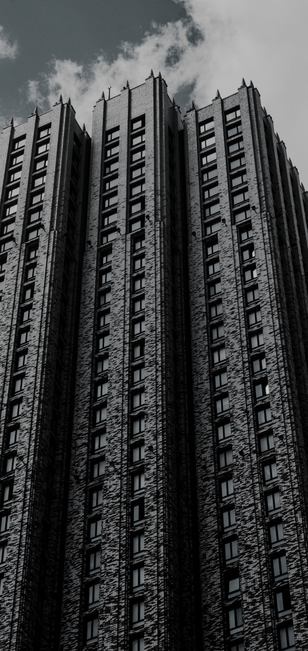 небоскреб, здание, высотка, кирпич, облака, грусть