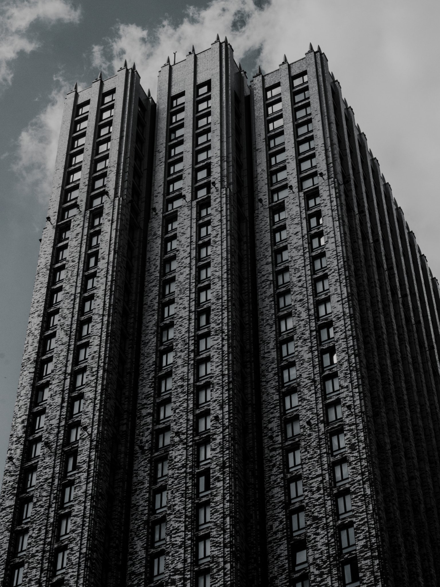 небоскреб, здание, высотка, кирпич, облака, грусть