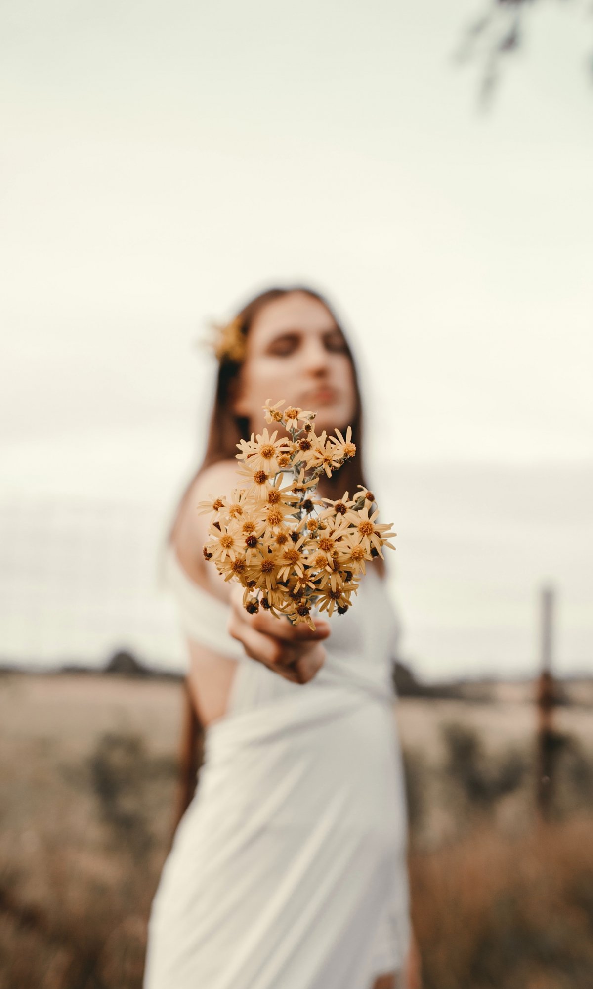Обои: девушка, цветы, поле, ромашки, человек - 1200x2000