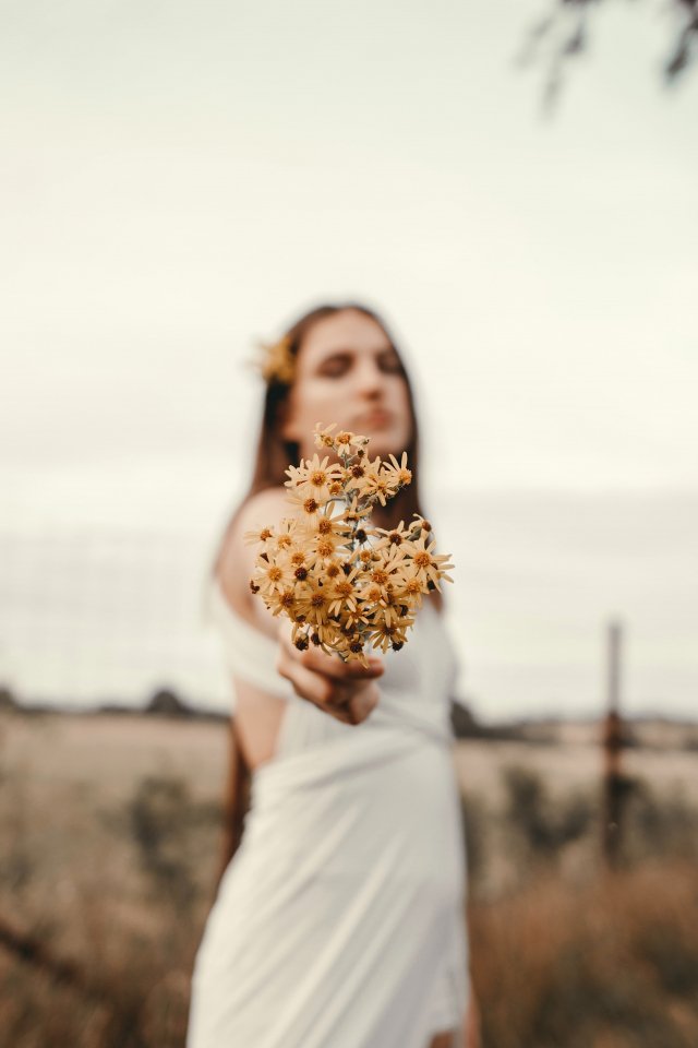 Обои: девушка, цветы, поле, ромашки, человек - 640x960