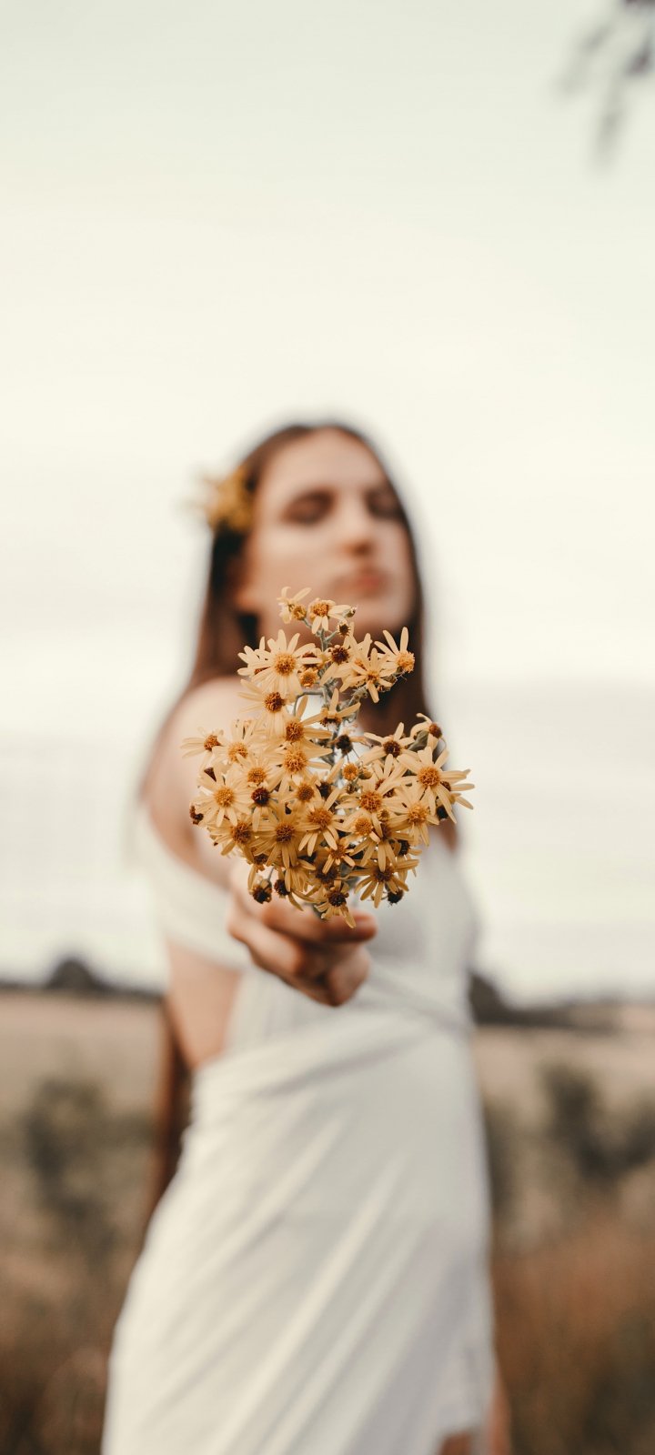 Обои: девушка, цветы, поле, ромашки, человек - 720x1600