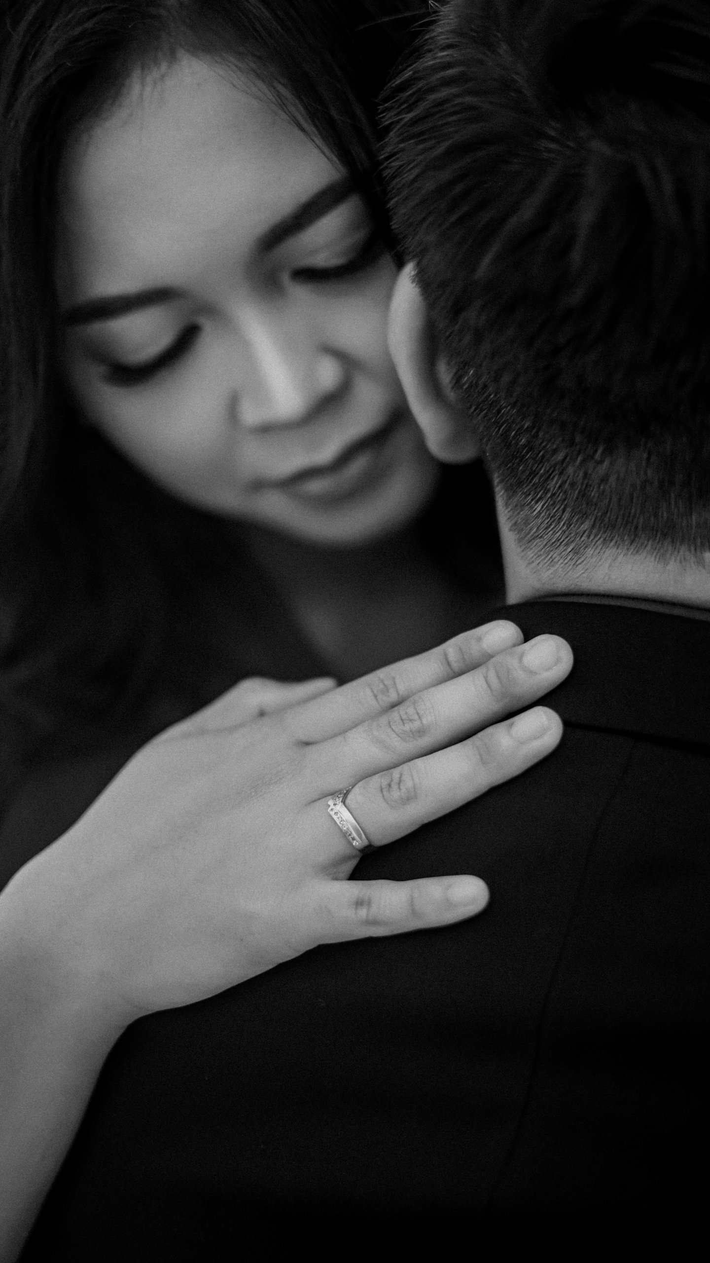 Обои: любовь, девушка, парень, кольцо, черно-белое фото, романтика - 1440x2560