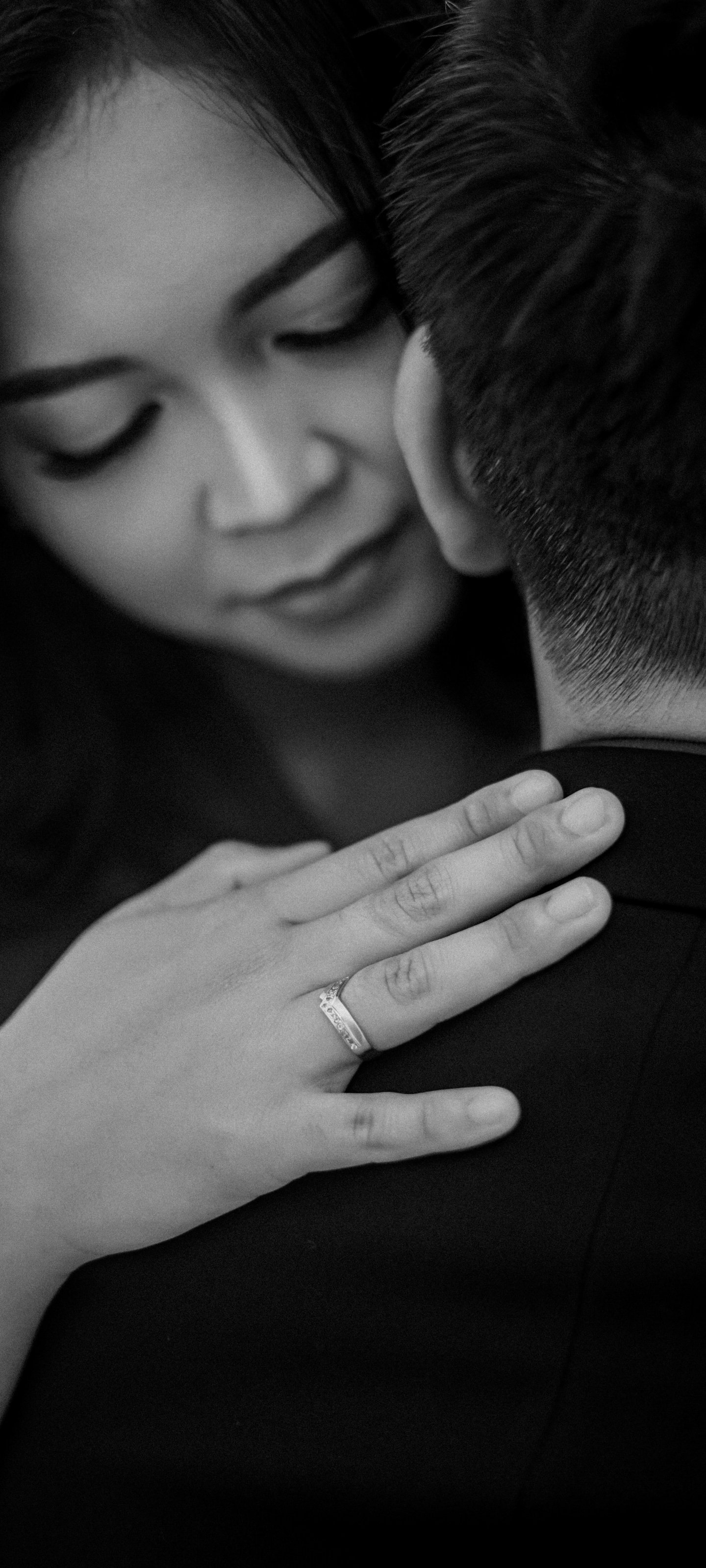 Обои: любовь, девушка, парень, кольцо, черно-белое фото, романтика - 1440x3200