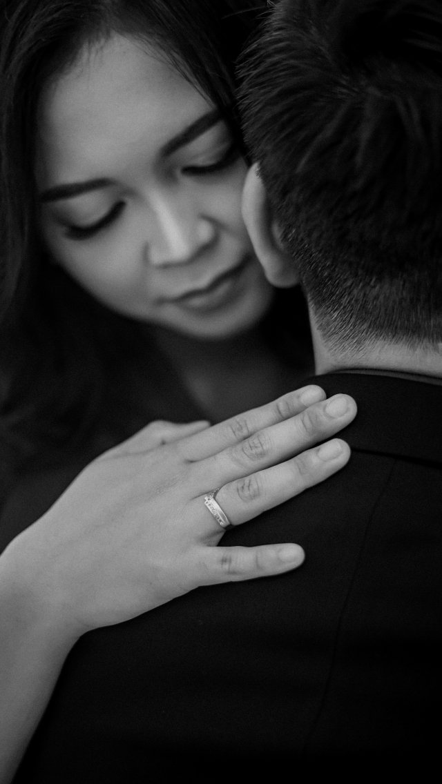 Обои: любовь, девушка, парень, кольцо, черно-белое фото, романтика - 640x1136