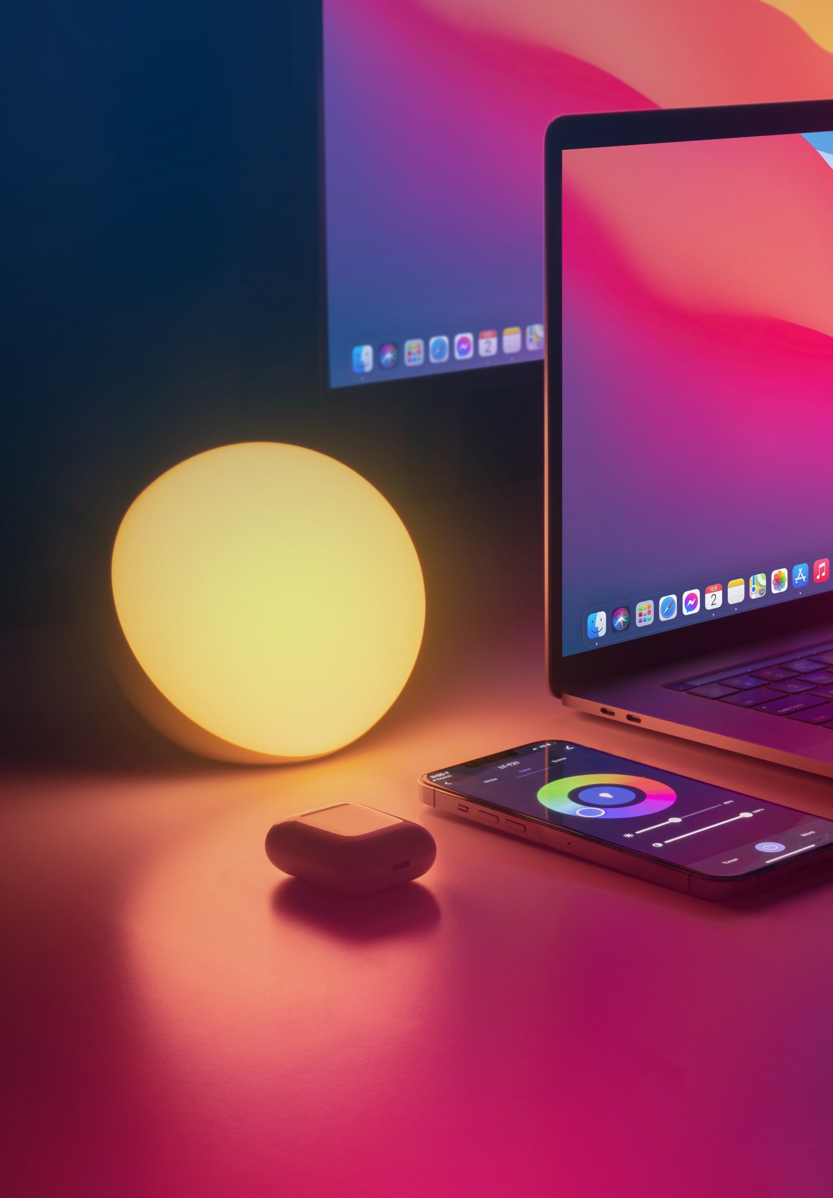 Обои: техника, лампа, телефон, наушники, компьютер, ноутбук - 1640x2360