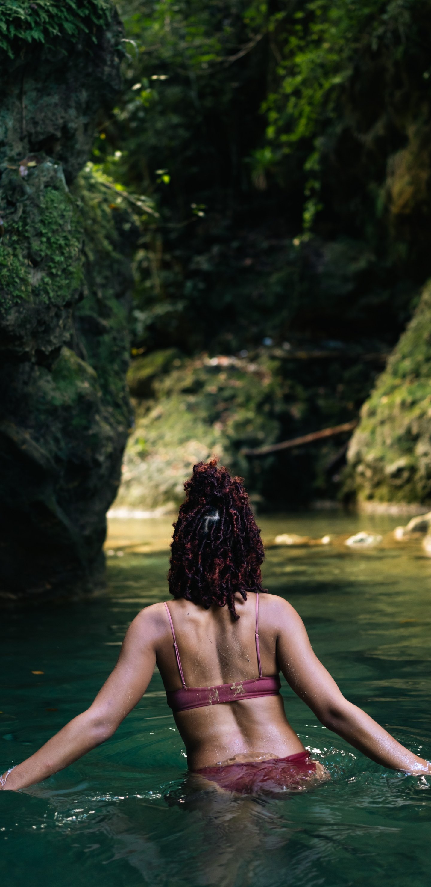 Обои: девушка, отдых, вода, скалы - 1440x2960