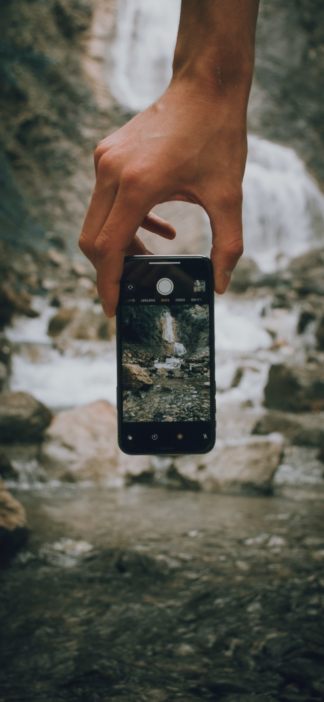 Обои: мобильная съемка, природа, вода, камни, водопад - 1125x2436