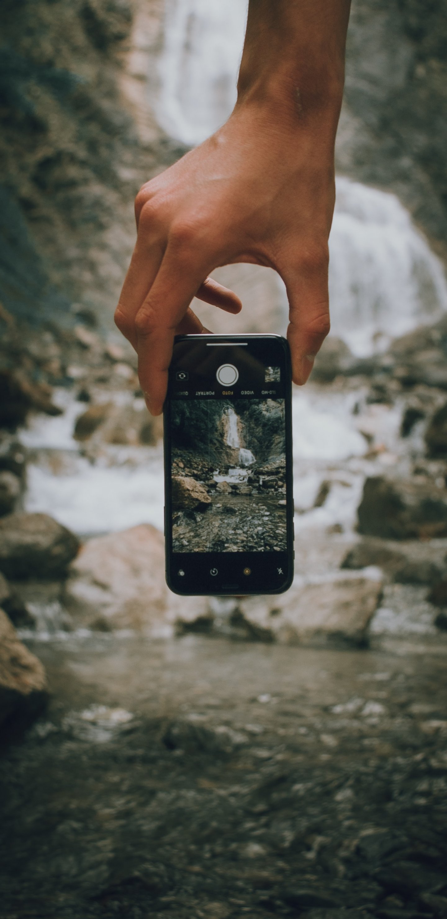 Обои: мобильная съемка, природа, вода, камни, водопад - 1440x2960