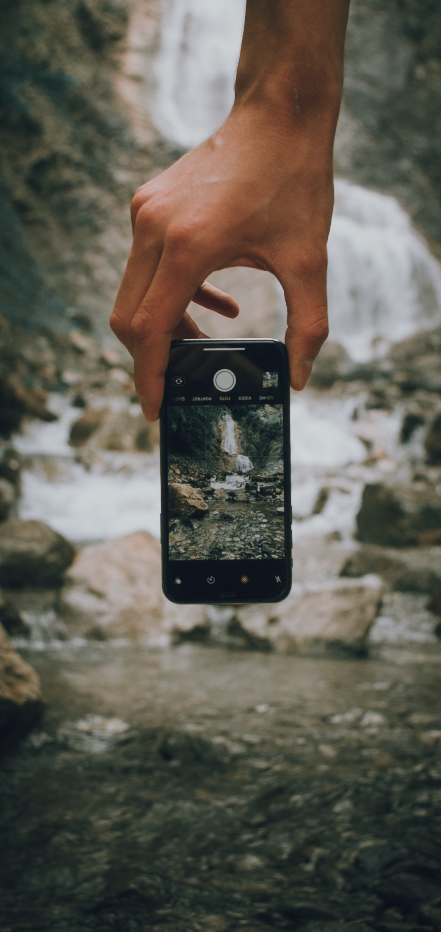 Обои: мобильная съемка, природа, вода, камни, водопад - 1440x3040
