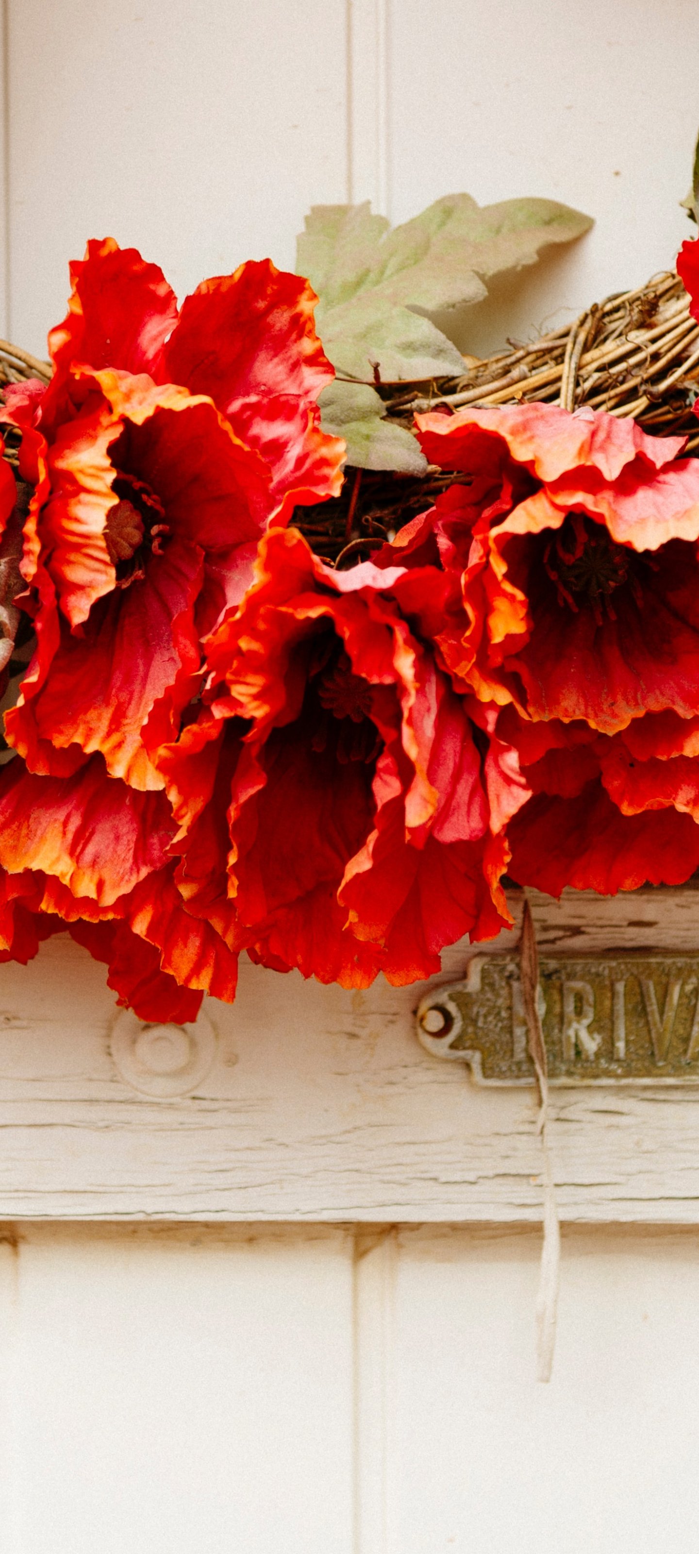 Обои: венок, цветы, украшение, дверь, деревянная дверь - 1440x3200