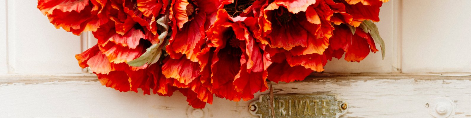 Обои: венок, цветы, украшение, дверь, деревянная дверь - 1590x400