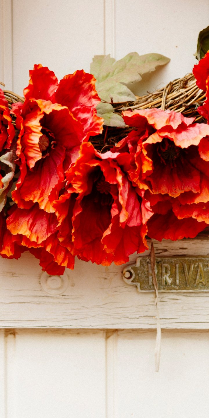 Обои: венок, цветы, украшение, дверь, деревянная дверь - 720x1440