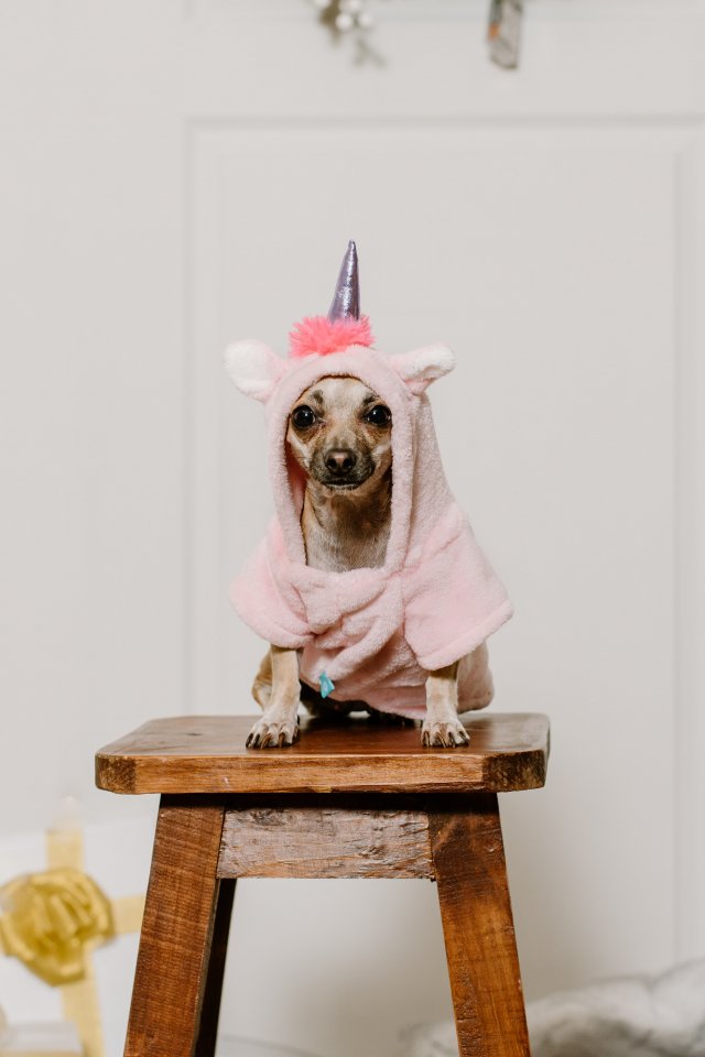 Обои: собака, единорог, одежда, милое фото, пес - 640x960
