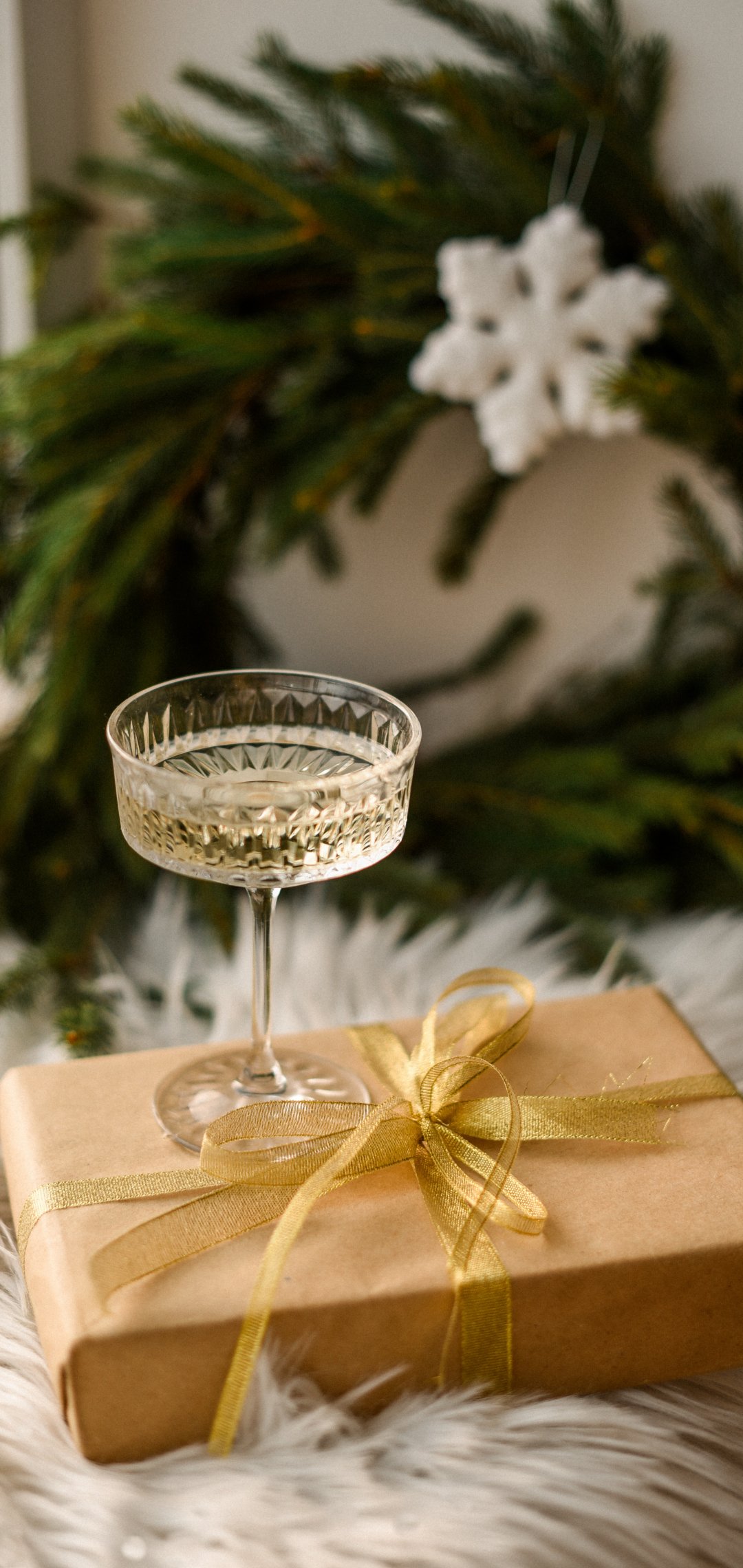Обои: бокал, игристое, подарок, упаковка, Новый год - 1080x2280