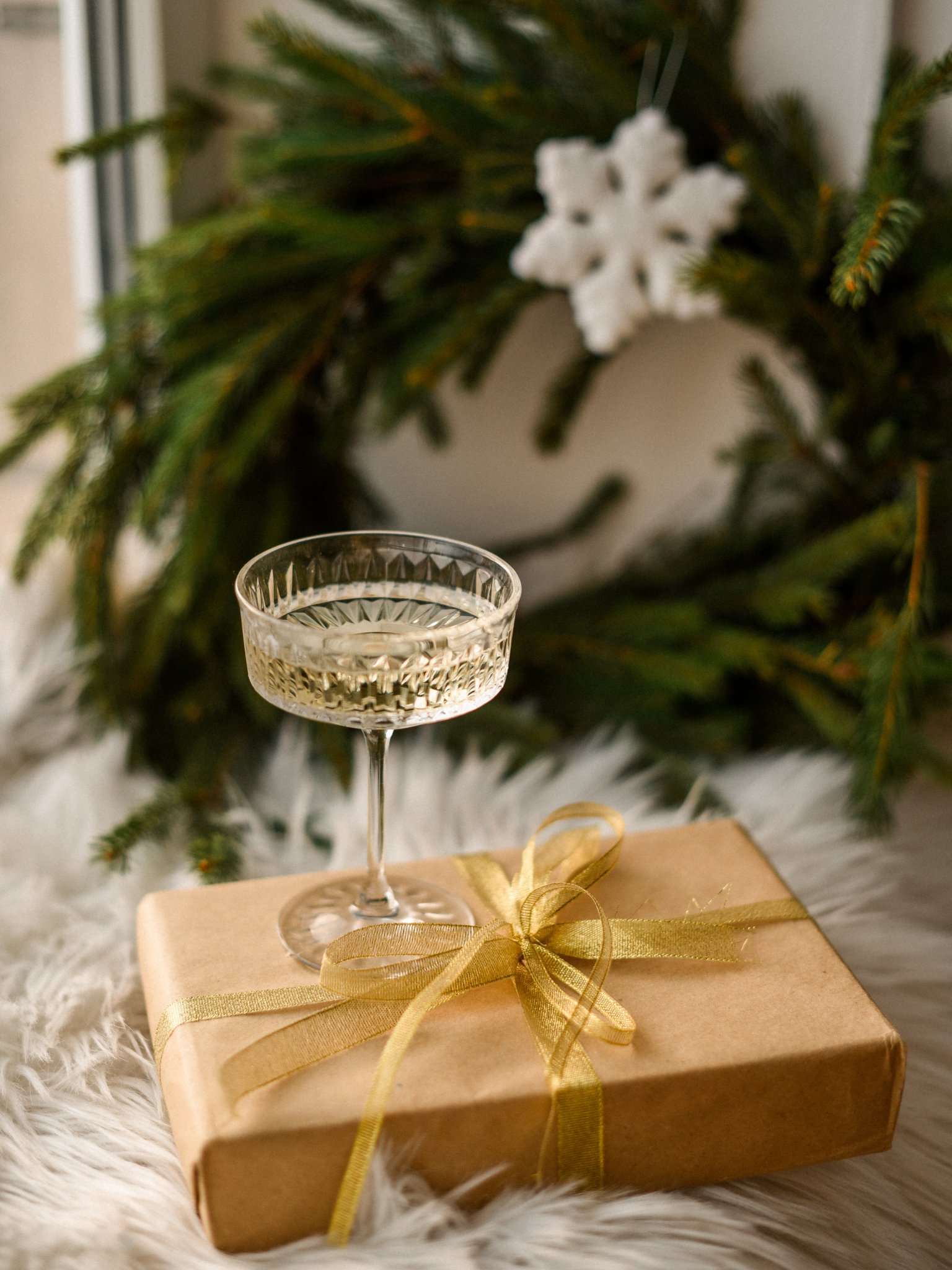 Обои: бокал, игристое, подарок, упаковка, Новый год - 1536x2048