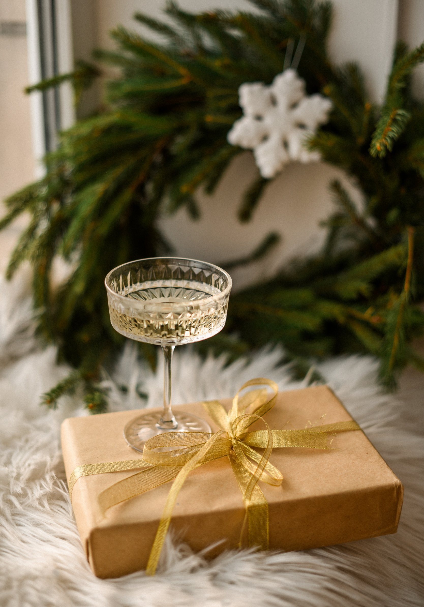 Обои: бокал, игристое, подарок, упаковка, Новый год - 1668x2388