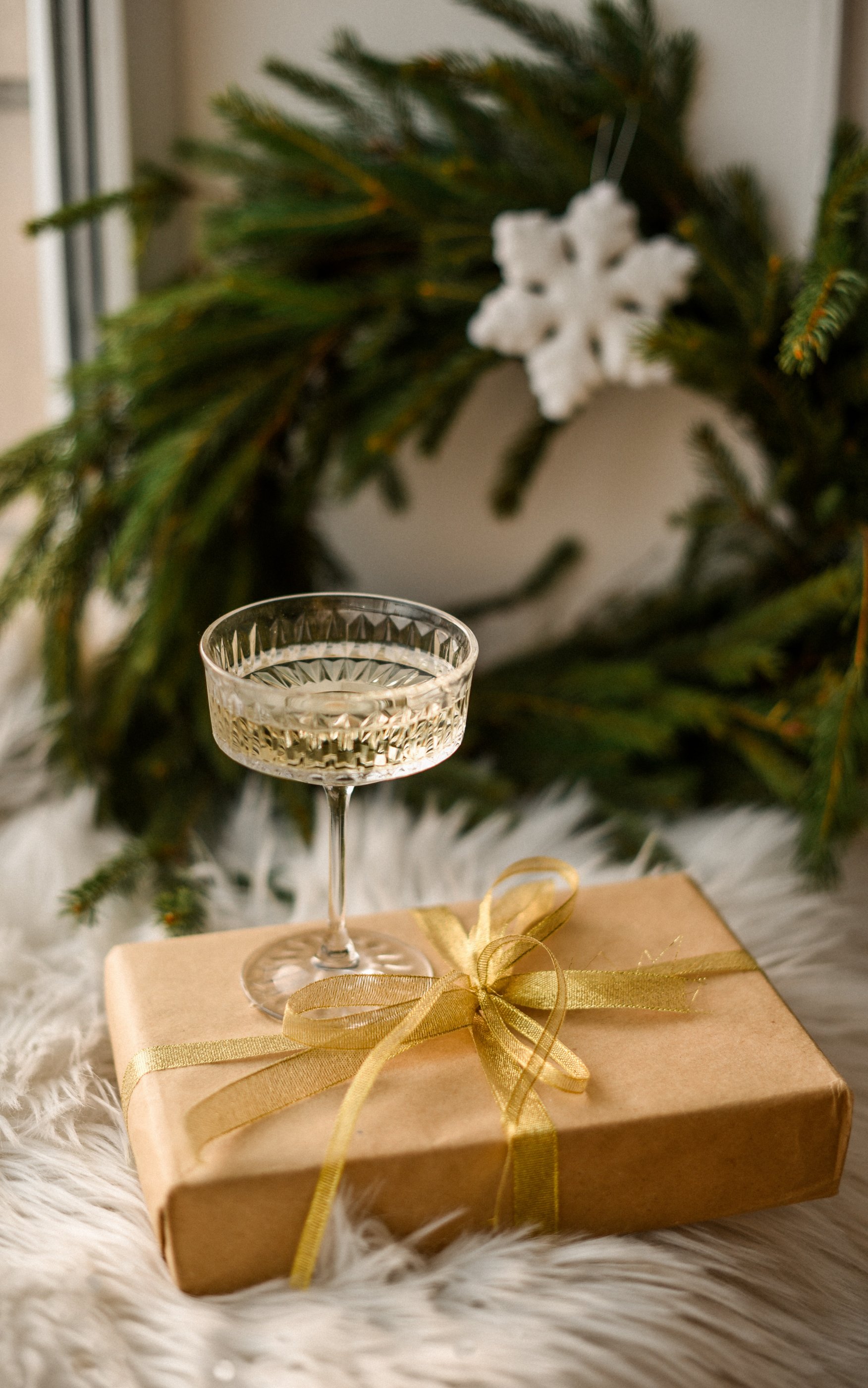 Обои: бокал, игристое, подарок, упаковка, Новый год - 1752x2800