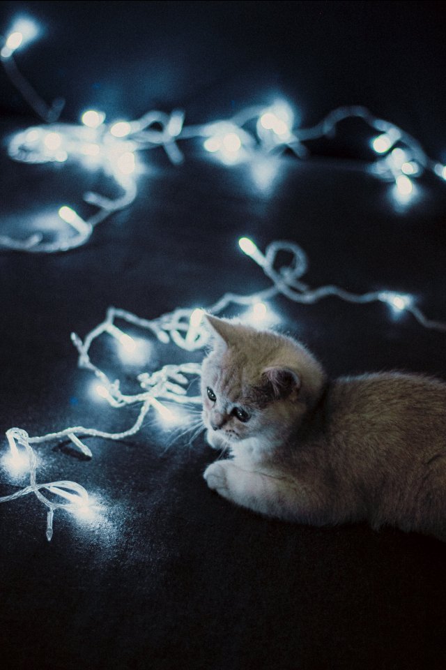 Обои: кот, гирлянда, пушистый - 640x960