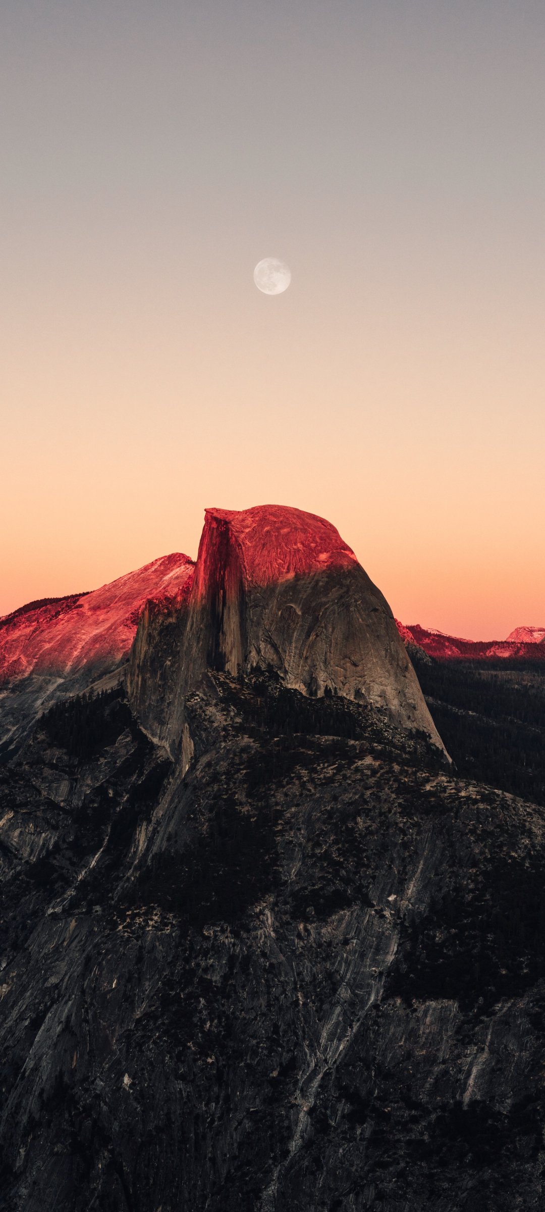 Обои: закат в горах, закат, горы, луна, скалы - 1080x2400