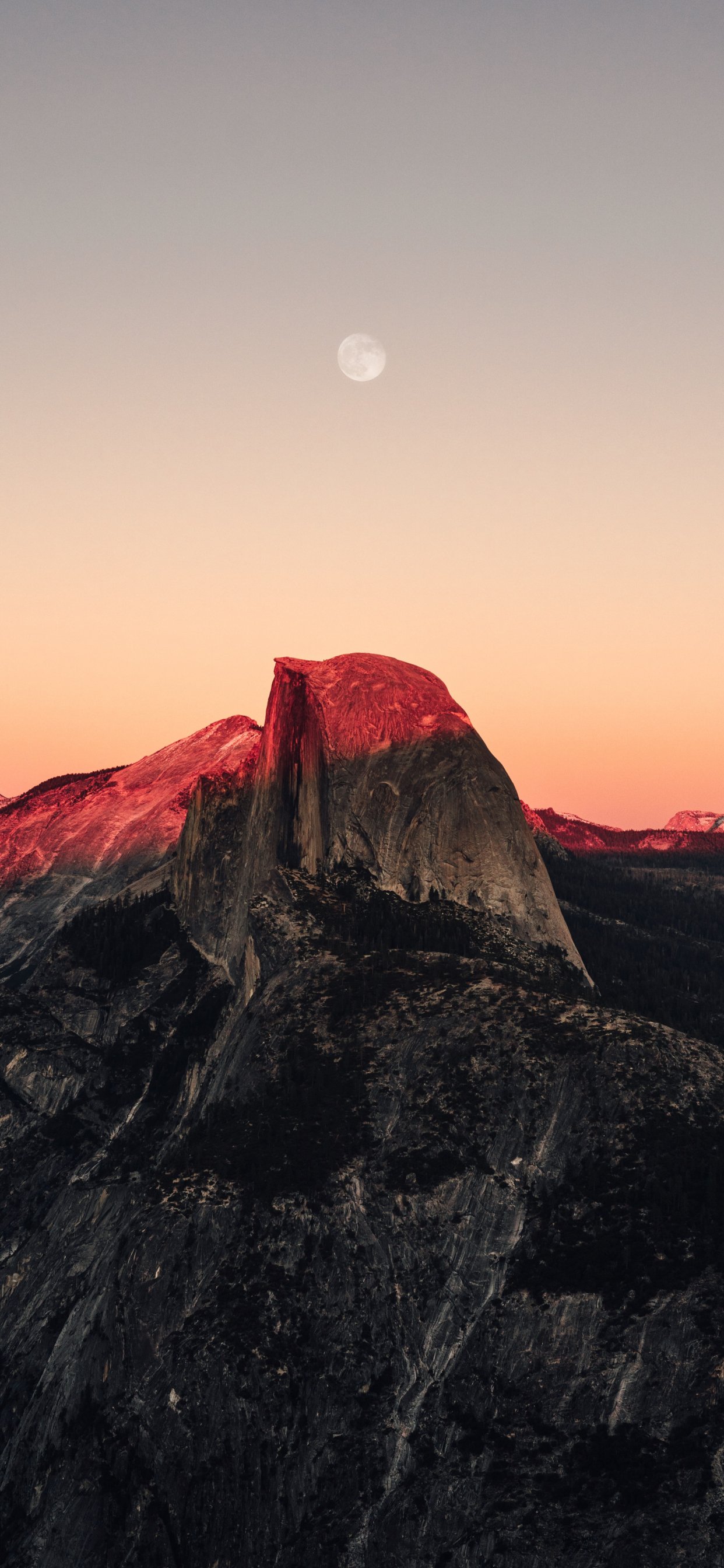 Обои: закат в горах, закат, горы, луна, скалы - 1242x2688