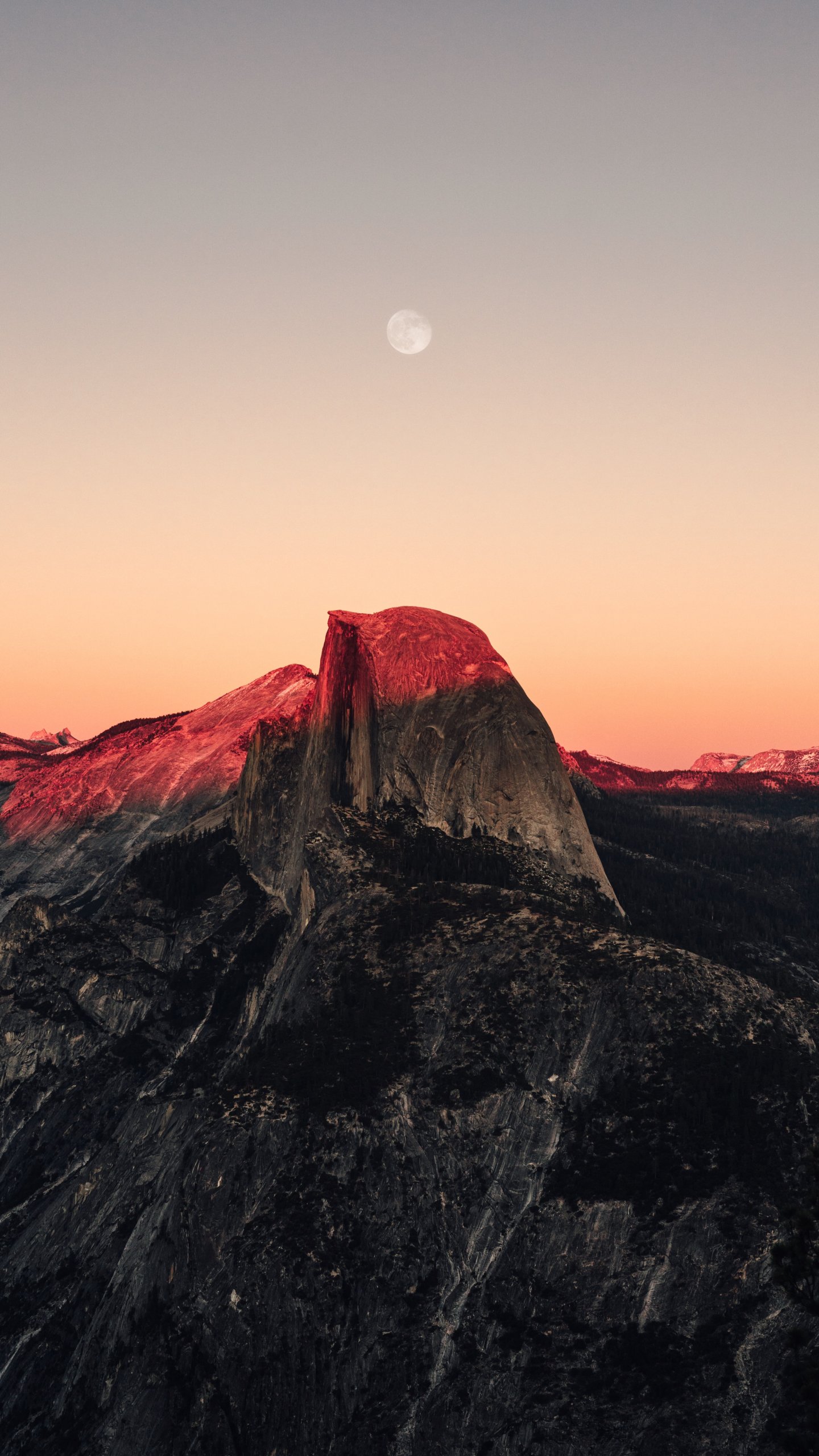 Обои: закат в горах, закат, горы, луна, скалы - 1440x2560