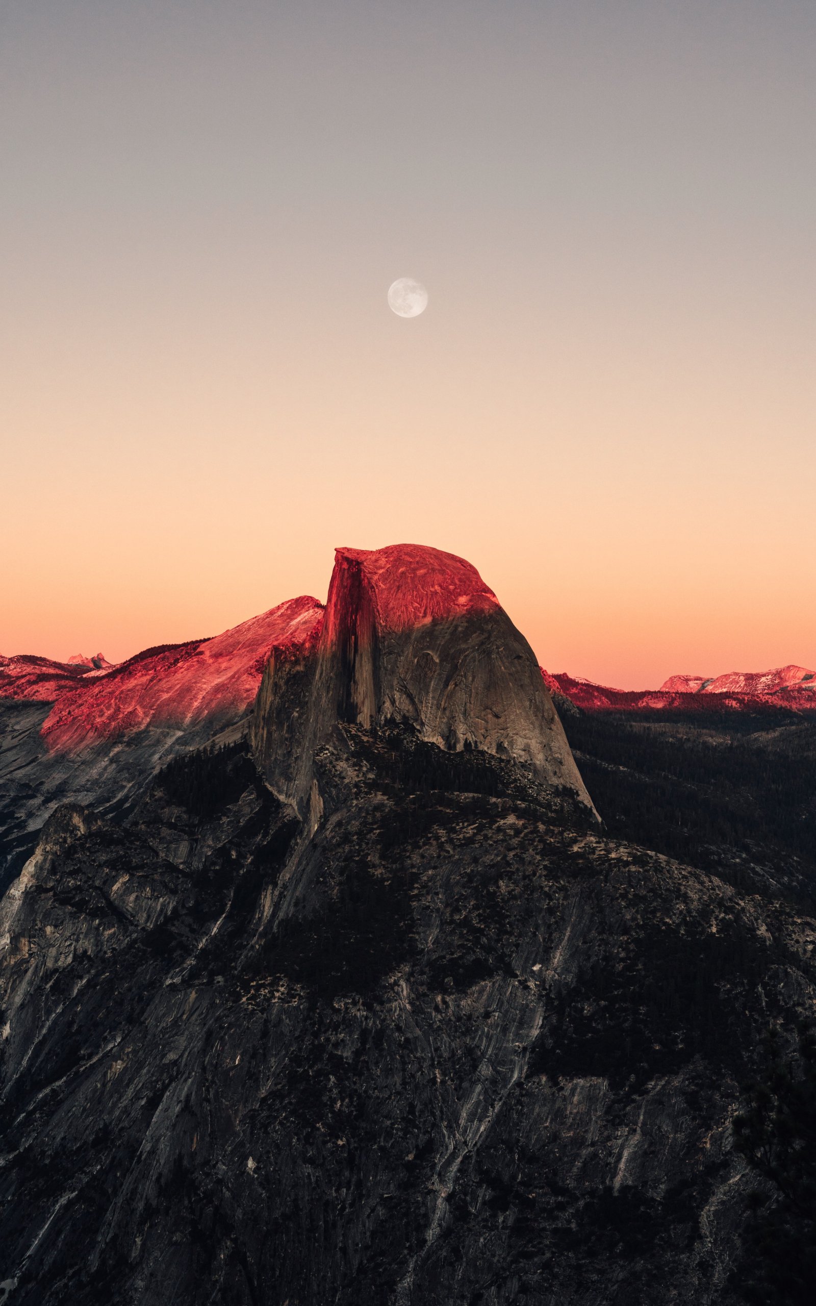 Обои: закат в горах, закат, горы, луна, скалы - 1600x2560