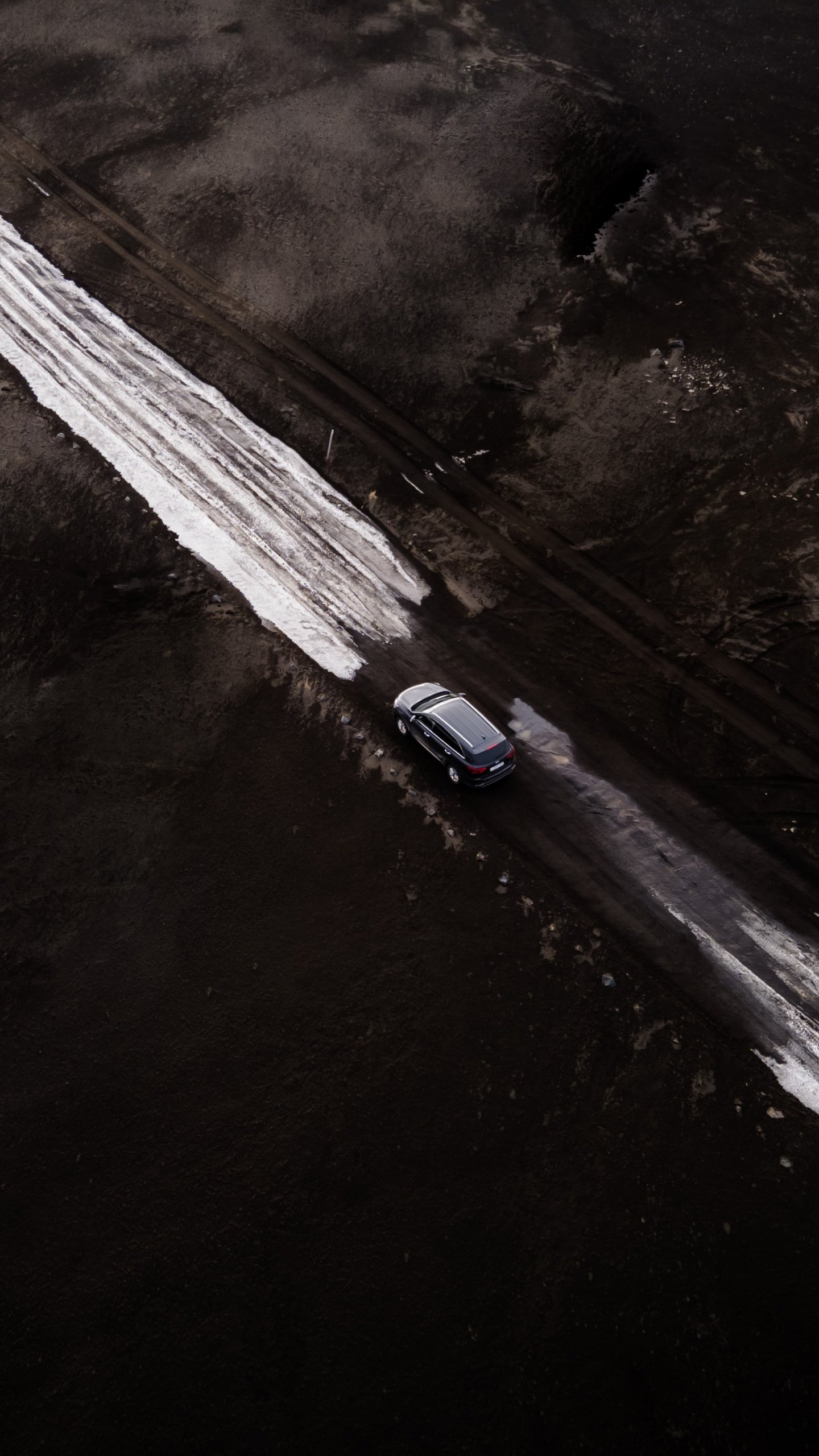 Обои: дорога, машина, снег, вид сверху - 1440x2560