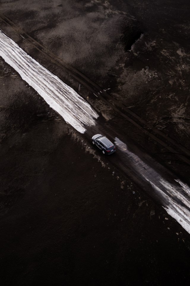 Обои: дорога, машина, снег, вид сверху - 640x960