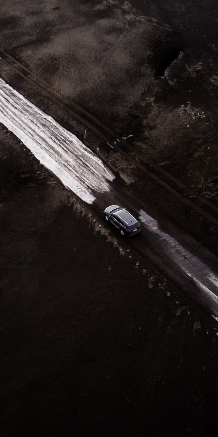 Обои: дорога, машина, снег, вид сверху - 720x1440