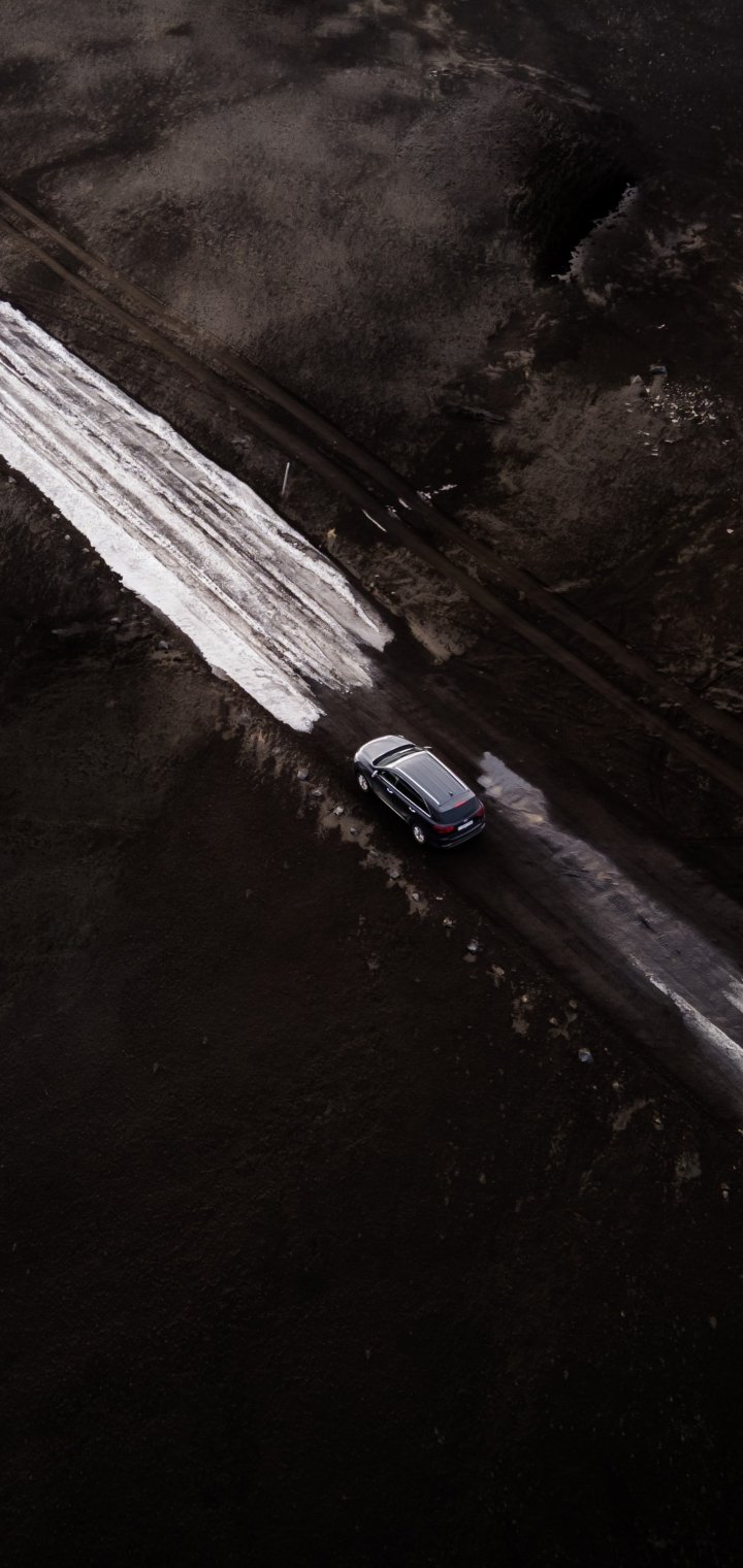 Обои: дорога, машина, снег, вид сверху - 720x1520