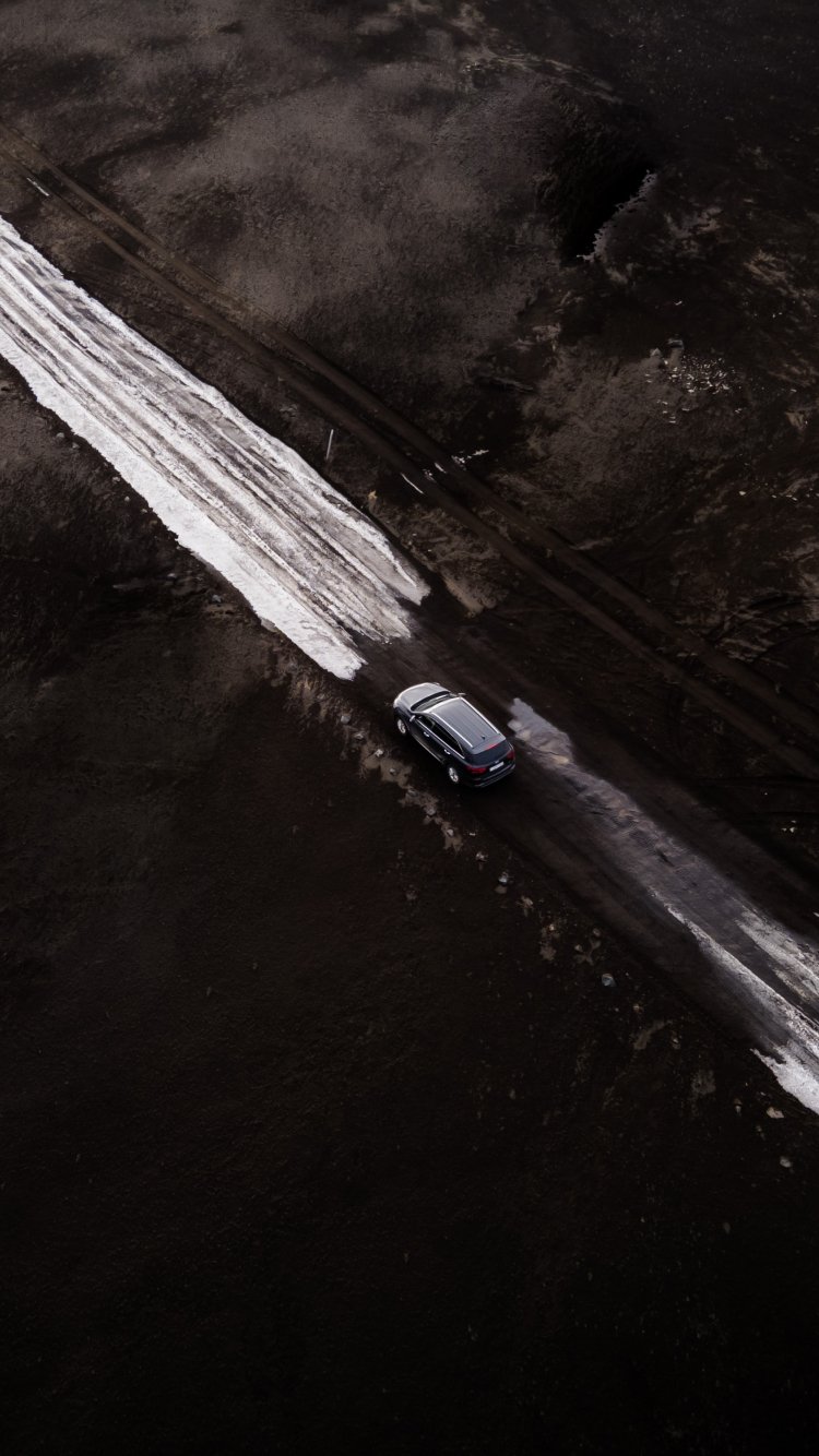 Обои: дорога, машина, снег, вид сверху - 750x1334