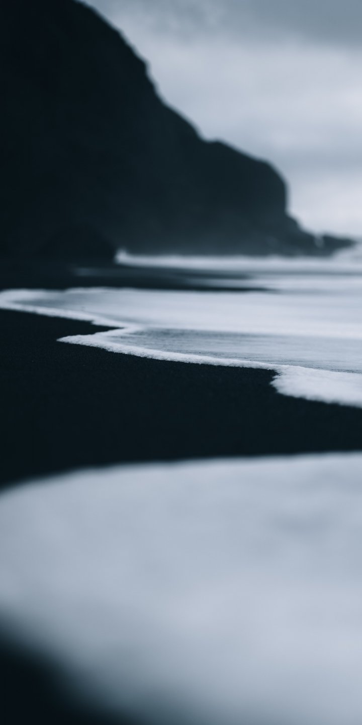 Обои: черный песок, песок, море, вода, прибой - 720x1440