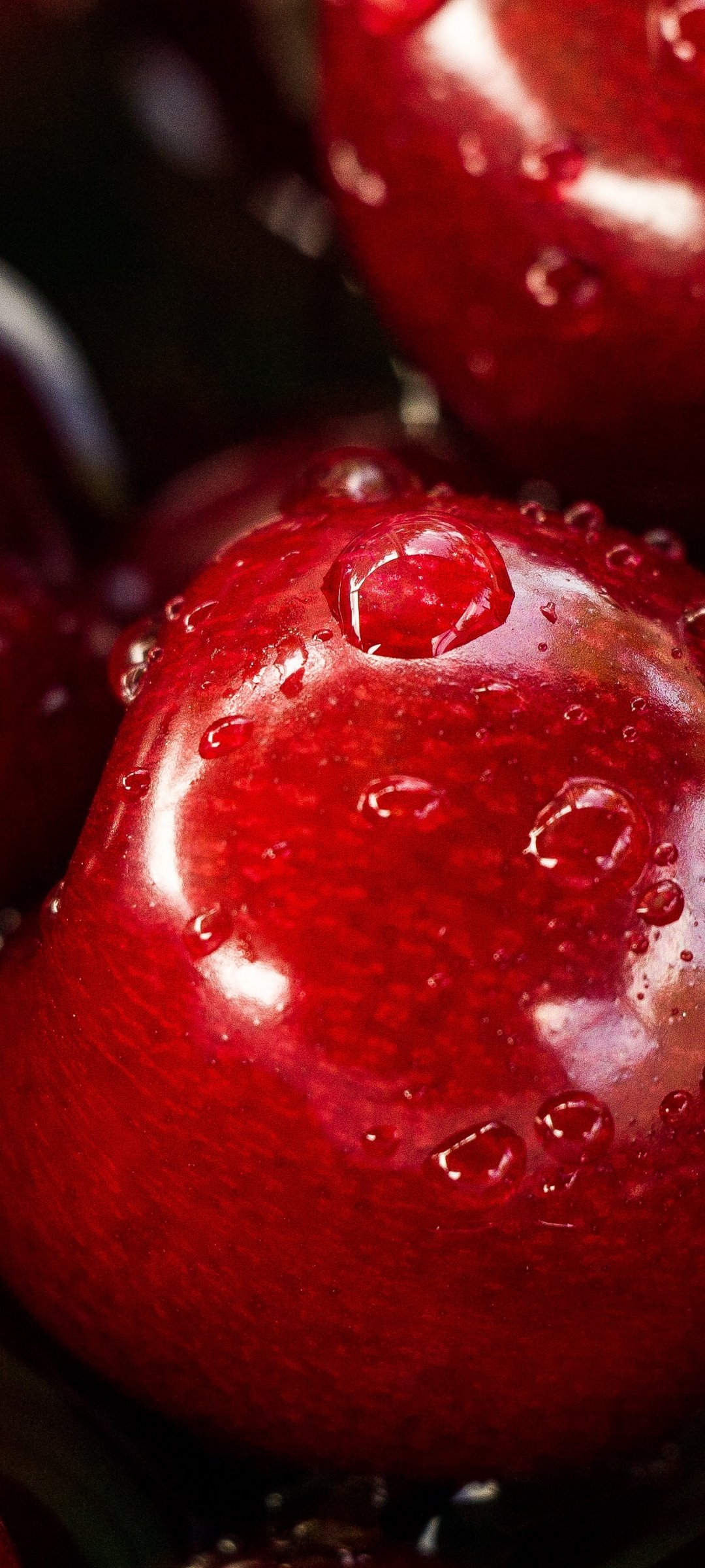Обои: вишня, капли - 1080x2400