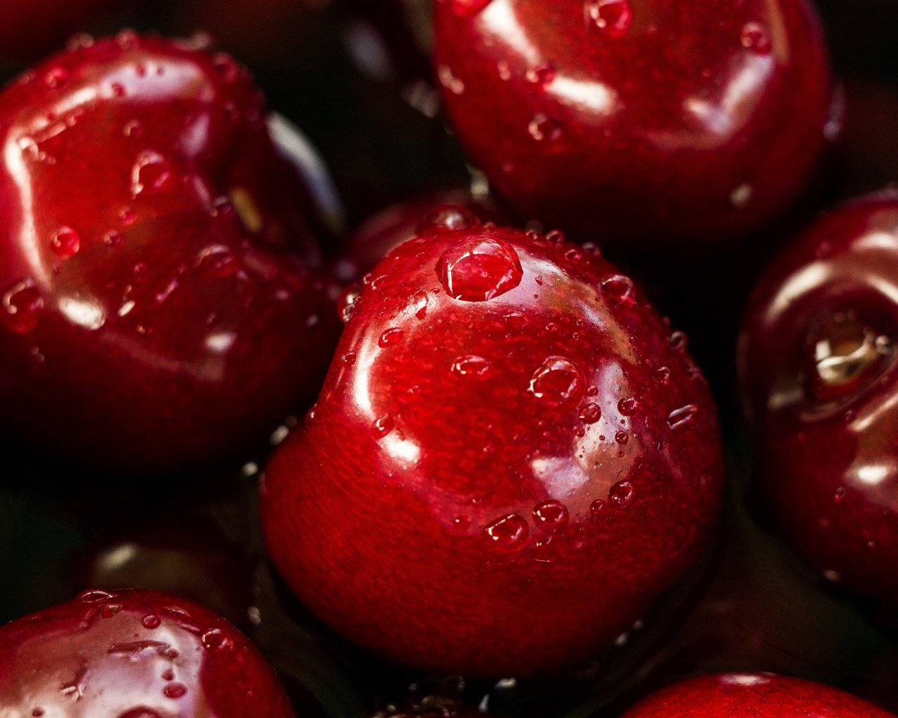 Обои: вишня, капли - 1280x1024