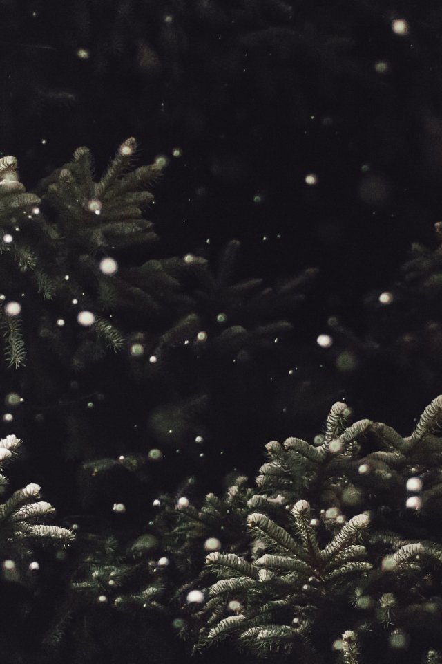 Обои: ель, снегопад - 640x960