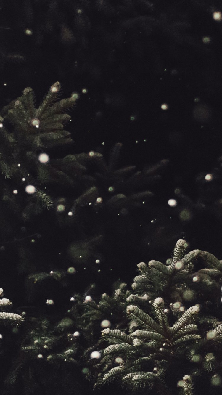 Обои: ель, снегопад - 750x1334