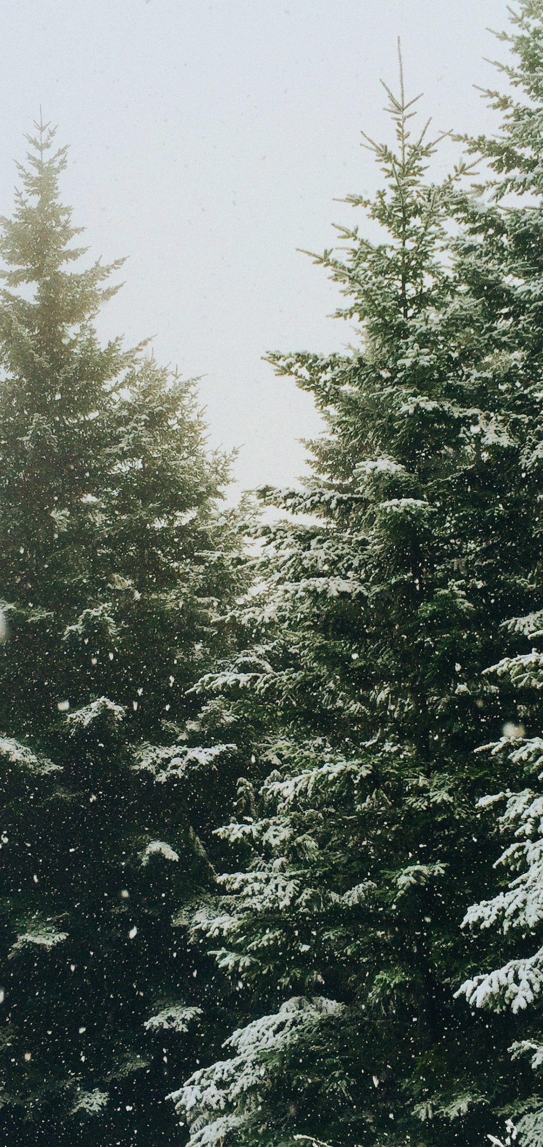 Обои: ель, снегопад, зима - 1080x2280